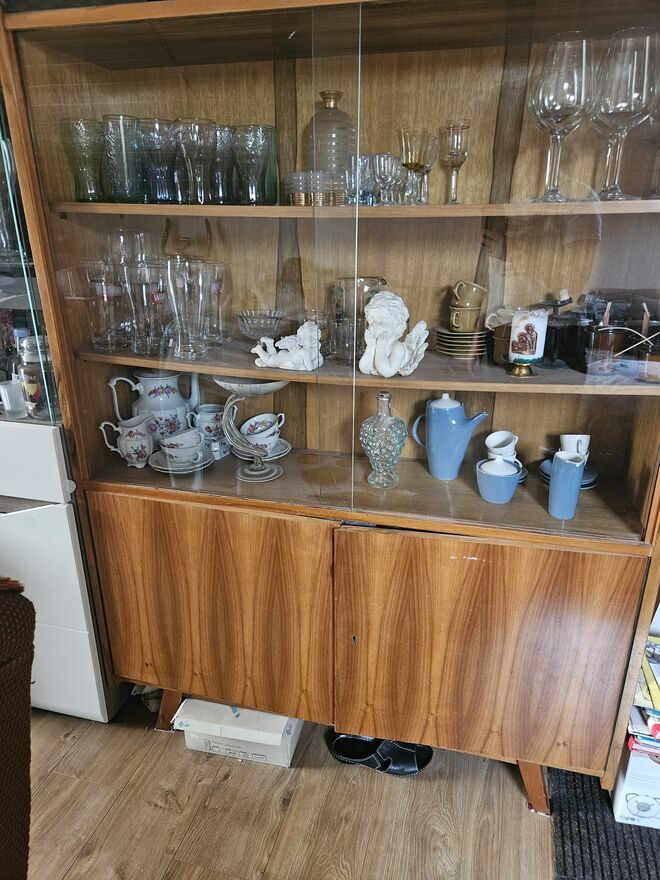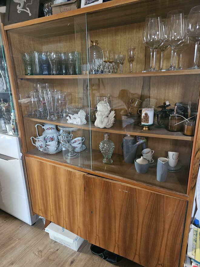 Gablotke sprzedaje pustą. Stoi na nóżkach, ma drzwiczki, a za nimi półkę.Wymiary :