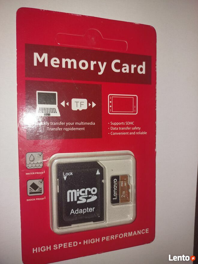 Sprzedam kartę o bardzo dużej pamięci - 2 TB z adapterem. Idealna do bardzo dużych i długich zapisów danych np: w kamerkach samochodowych, cyfrowych aparatach fotograficznych, kamerach, telefonach, laptopach, itp...W opakowaniu fabrycznym. Możliwość odbioru karty osobiście po wcześniejszym umówieniu się telefonicznym.