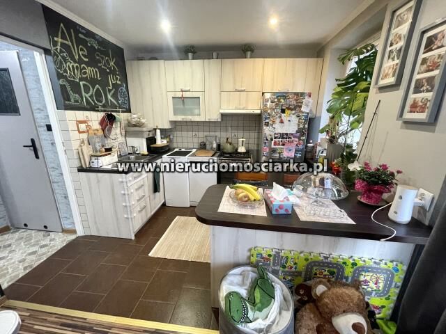 Kuchnia umeblowana wraz z wyspą. W salonie duża szafa w zabudowie.