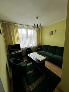 Mieszkanie na wynajem przy ulicy Kurpiowskiej w Jastrzębiu-Zdroju z widokiem na zieleń. W salonie na ścianach tynk, na ...